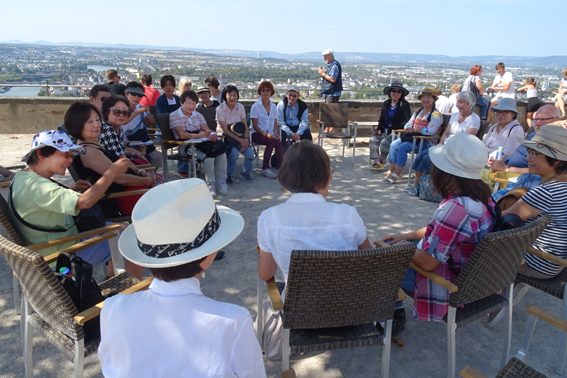 友好関係にあったラインマイン友の会との合同遠足が夏たけなわの8月に実現。目的地は両者にとって中間地点となるコブレンツ。旧市街見学、昼食後はロープウエイに乗ってEhrenbreitstein要塞の高台へ。途中ベートーベン母…